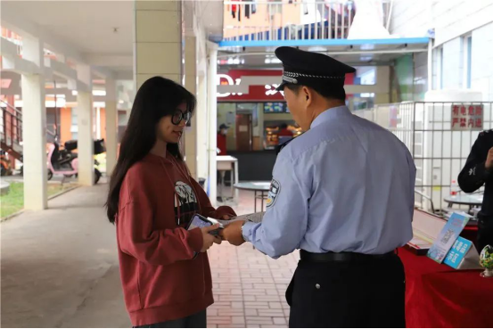 警官们在活动现场宣传,过往及驻足观看的师生们纷纷领取禁毒宣传手册和反邪教宣传单张,带回课室、宿舍继续详细了解禁毒知识、认清毒品危害,共同筑牢拒绝毒品、反对邪教的“防护墙”。