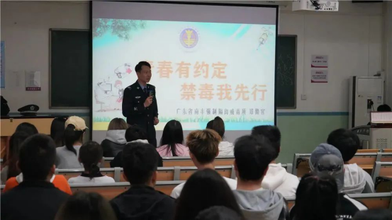 3月23日,下午14点-下午15点,在公共教室展开讲座,由广东省南丰强制隔离戒毒所郑东翔警官主讲《青春有约定,禁毒我先行》,带领大家领略一下新时代下那些超能装的新型毒品。
