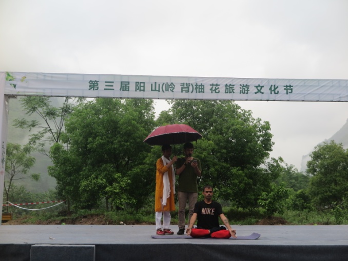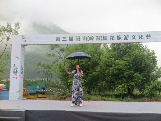 开幕式当天早上阴雨绵绵、薄雾缭绕,在前往活动地点途中柚花飘香。在表演开始前,留学生们参观了当地村落风景和品尝阳山特色美食,他们为村民带来异域风情和青春活力,同时也被村民的热情和淳朴所感染,现场气氛活跃。