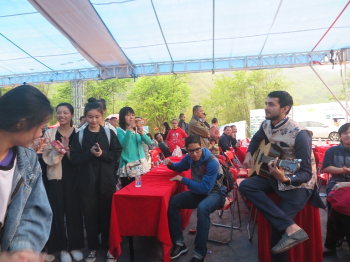 留学生为村民弹吉他