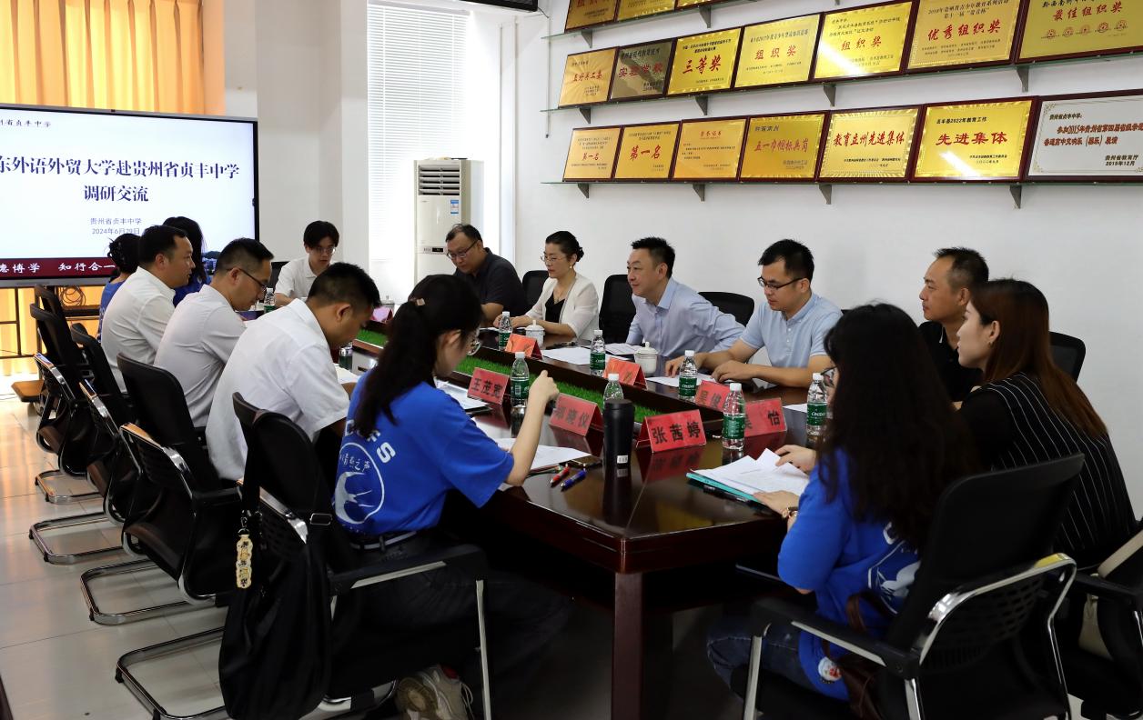 贞丰县委副书记金传友回顾了我校历届研支团扎根基层、服务一线教育工作的支教历程,对我校第九届研究生支教团一年来用心、用情、用力的勤勉工作给予了高度的肯定。会上,双方就如何破解贞丰县教育教学面临的困境展开讨论。我校研究生支教团成员黄奕涵、李柯漫、张茜婷、郑晓仪(中华文化国际传播党支部党员)四位同学逐一详细汇报了在贞丰中学的支教工作和生活。