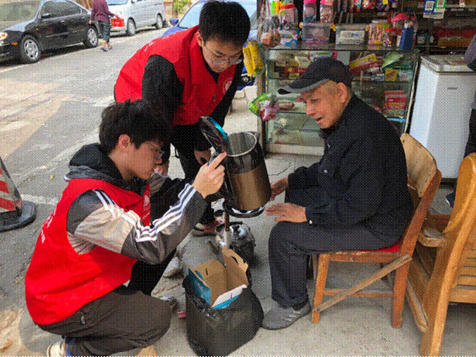 图5 志愿者为老人送去全新水壶并教会老人使用方法