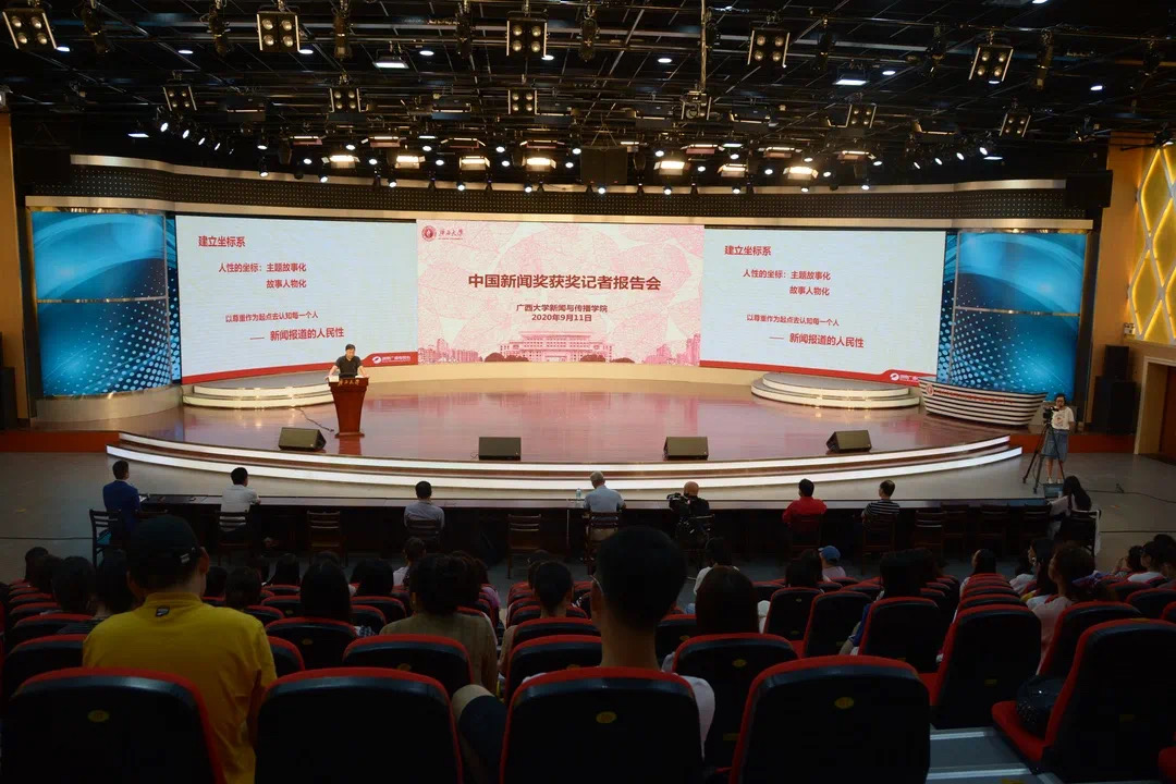 2020年9月11日,广西大学新闻与传播学院迎来了一场别开生面的新生教育会,湖南广播电视台新闻中心对外报道部主任刘安戈与广西日报柳州记者站站长谌贻照在融媒体中心为全院新生分享了其获得中国新闻奖背后的故事,以及自己从业以来积累的实践经验。学院院长郑保卫、党委书记唐兴和常务副院长刘洪等学院领导出席了本次报告会,报告会还通过腾讯会议进行网络直播,吸引了众多网友的参与。