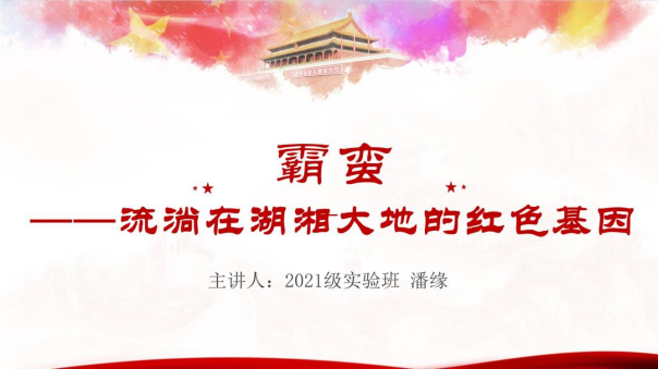 在“红色文化”主题部分,来自21级卓越班的三个研学小组,分别作了题为《红色文化之湘江战役》《探究毛泽东和刘少奇异途同归的革命心理》《霸蛮——流淌在湖湘大地的红色基因》的研学报告,从不同视角关注红色文化的历史成因和深刻影响,探究革命精神中的红色基因。杨玉莹、陈泳杏诵读了自己的诗歌作品,廖晴、李凤起、李紫钰和江素素则诵读了自己的散文片段,共同追怀那一段壮怀激烈的革命岁月。