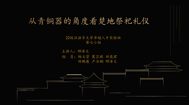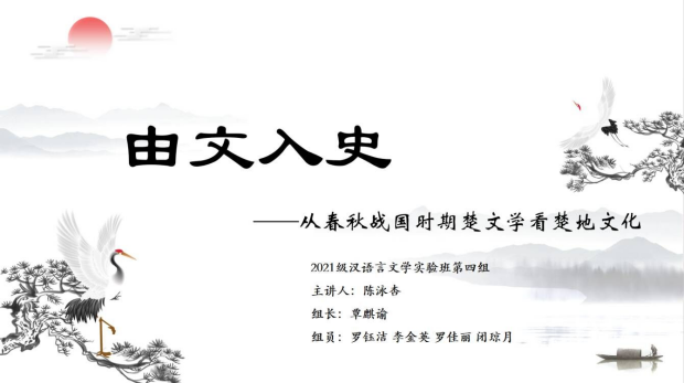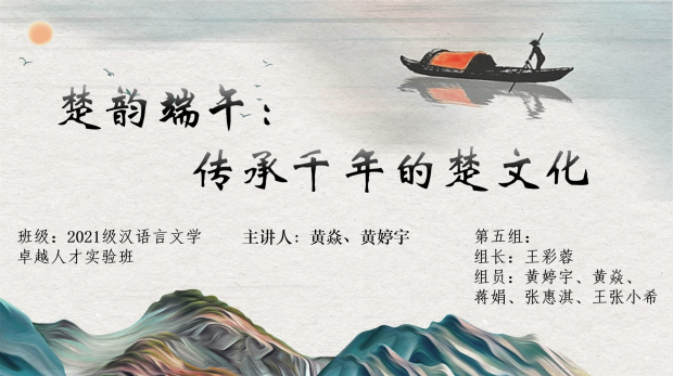 在“楚韵风华”主题部分,来自21级、22级两个卓越班的四个研学小组,分别作了《由文入史:从春秋战国时期楚文学看楚地文化》《楚韵端午:传承千年的楚文化》《长沙之旅:楚巫文化研究》《从青铜器的角度看楚地祭祀礼仪》的研学报告,既有文学之内的历史溯源,也有文学之外的文化寻根。张雯勤和黄晴在散文中抒写了湖南省博物院中与历史对话的心路历程,杨雪雨在诗歌中散逸出文物的拙朴气息。