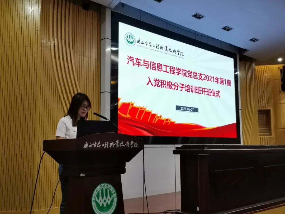 为壮大党员队伍,吸收新鲜血液,提升入党积极分子的理论素养,保证党员发展质量,汽信学院于5月27日晚,在第二报告厅举行2021年第1期入党积极分子培训班开班典礼。汽信学院党总支副书记罗峻文、学生党支部书记黄晓赫、教师党员及本期培训班的99名入党积极分子参加开班典礼。