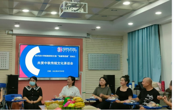 99——14日,在美术设计学院党总支的组织下,教师党支部深入开展“党建带团建 共度中秋节”主题党日活动,全体党员与在校学生一起度过中国传统节日中秋节。通过活动引导广大青年学生深入体会我国传统节日的丰富内涵,培养学生的家国情怀,树立文化自信;同时也通过活动传达党组织对广大青年学生的关心关怀,凝心聚力,做好立德树人工作。