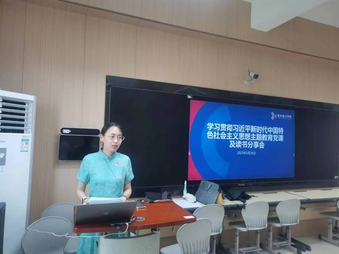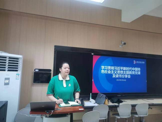 5月26日下午,广西幼儿师范高等专科学校美术设计学院教师党支部,在青秀校区幼师大厦901组织开展了学习贯彻习近平新时代中国特色社会主义思想主题教育党课及读书分享会,会议由教师党支部宣传委员张敏老师主持,学院赖兵院长、童健副院长出席会议,党员教师通过线上和线下结合的方式同步参加了会议。
