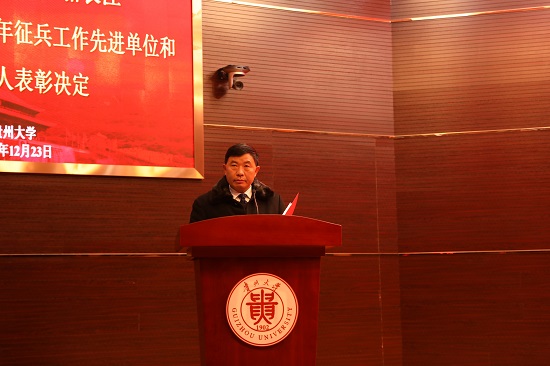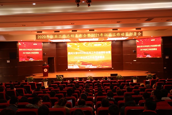 “贵州大学深入学习贯彻习近平强军思想,强化使命担当,认真履职尽责,高标准高质量超额完成了2020年度征兵工作任务,男女学生共281人入伍,超过任务数119人,是贵州本科高校征兵人数最多的学校。”12月23日,在我校2020年征兵工作总结表彰会暨2021年征兵工作动员部署会议上,校领导报告了我校2020年征兵工作成绩。