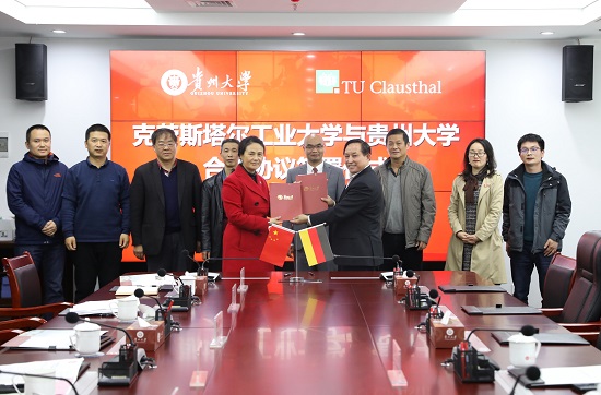 教师工作处处长陈莉琼与侯正猛代表双方共同签署《克劳斯塔尔工业大学与贵州大学合作协议》。