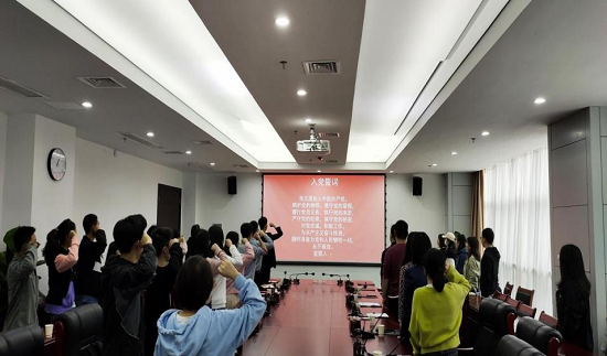 在社团成员代表王治平的带领下,大会全体成员重温入党誓词。