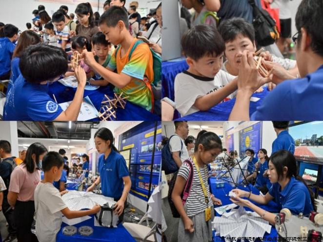 互动环节,我院学生邀请观众亲自动手,体验搭建简易的六杆张拉结构模型和制作太阳花、扭转塔等各类折纸模型,充分体验科技与艺术结合的乐趣。许多观众在参与后表示惊叹:“原来这些看似简单的折纸背后,有着如此复杂的数学和工程原理!”互动环节不仅让科普变得有趣,还为青少年提供一个亲身参与科学实验的机会,激发对于科学探索的浓厚兴趣。许多家长也对此称赞不已:“这样的活动让孩子们通过动手实践,更加直观地感受到科学的魅力,真正做到了寓教于乐。”
