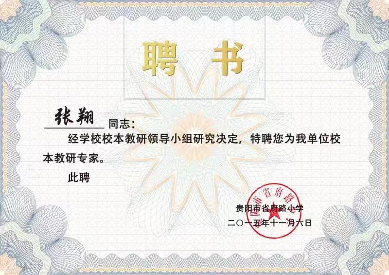 祝贺我院张翔教授与杜建群教授被贵阳市省府路小学特聘为校本科研专家