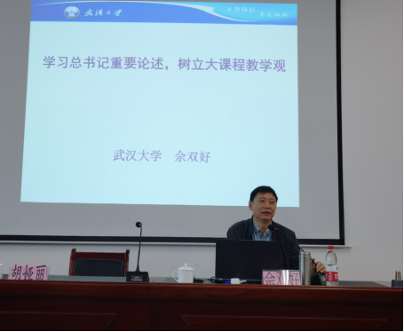 佘双好教授以党的十八大以来习近平总书记关于思想政治理论课的重要批示和讲话为切入点,从“思想政治理论课建设的宏观透视”“思想政治理论课建设的专题精进”以及“树立大思想政治理论课程教学观”三个方面,诠释了在新时代背景下如何践行大视野、大格局、大格局、大课堂的“大思政课”理念。