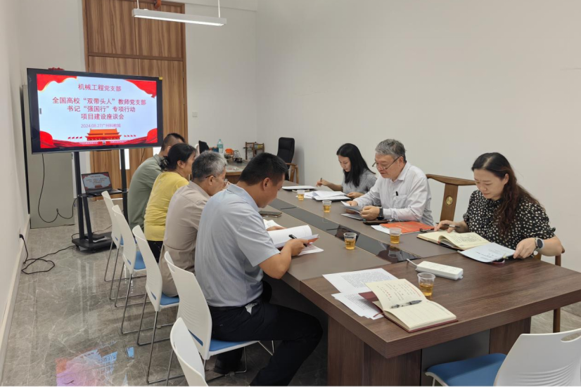 2024年8月27日下午,学校党委书记张竹筠就全国高校“双带头人”教师党支部书记“强国行”专项行动项目建设,与机械工程党支部支委召开座谈会。党政办副主任罗茜、组织人事处文莹老师一同参加了座谈会。