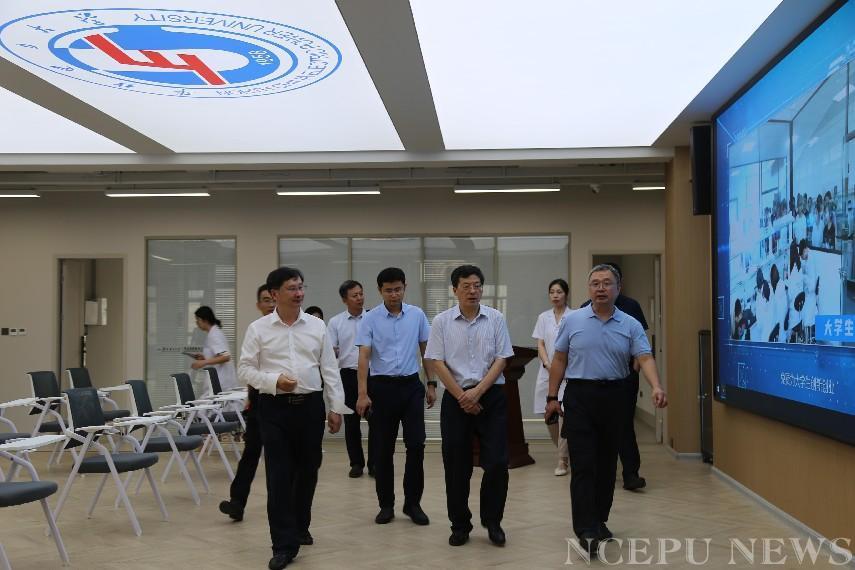 8月10日,河北省教育厅副厅长余育国来我校考察调研成果转化及创新人才培养情况,省委教育工作领导小组秘书组等工作人员随同调研。华北电力大学党委副书记郭孝锋陪同调研。