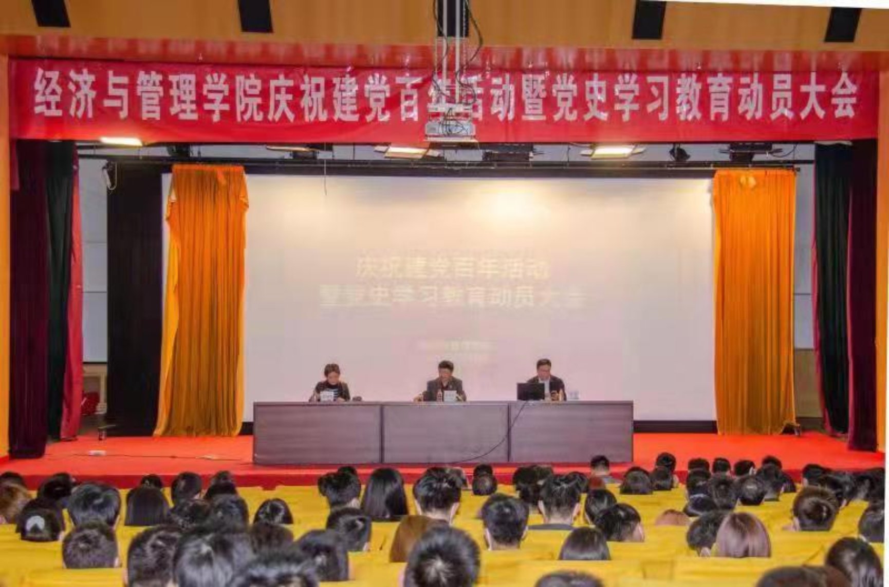 4月20日下午,经济与管理学院党委举行庆祝建党百年活动暨党史学习教育动员大会。华北电力大学庆祝中国共产党成立100周年活动暨党史学习教育巡回指导组(以下简称“巡回指导组”)第三组组长张天兴、联络员张凯、组员马新科,马克思主义学院党总支书记孙平和经济与管理学院全体班子成员、党委委员、师生党员、学生党员发展对象、入党积极分子、党外人士代表,学生骨干代表参加活动。大会由学院党委书记张瑞雅主持。