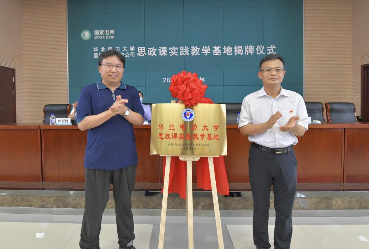 19日中午,华北电力大学思政课实践教学基地揭牌仪式在国网吉林供电公司机关二部举行。吉林公司党委书记朱晓锋,学院院长王伟出席仪式并致辞。吉林公司副总经理宋宇辉、学院党总支书记孙平出席仪式并共同为思政课实践教学基地揭牌。吉林公司纪委书记、工会主席孙振胜主持仪式。此次思政课实践教学基地的建立,不仅是探索实践校企合作新模式,弘扬马克思主义思想理论,更是将理论与实践相结合,将党的思想文化与电力行业发展相关联,既丰富思政教育新路径,又从现实中探索实践新课题,为深化党史学习教育、强化思想政治建设注入了新的活力。思政课实践教学基地的落成可以进一步促进思政课小课堂同社会大课堂、学生实现理论与实践、学生把学习奋斗的目标同民族复兴的伟大目标进行充分融合,有利于学院教师将理论研究和吉林公司党建创新实践进行有效结合。