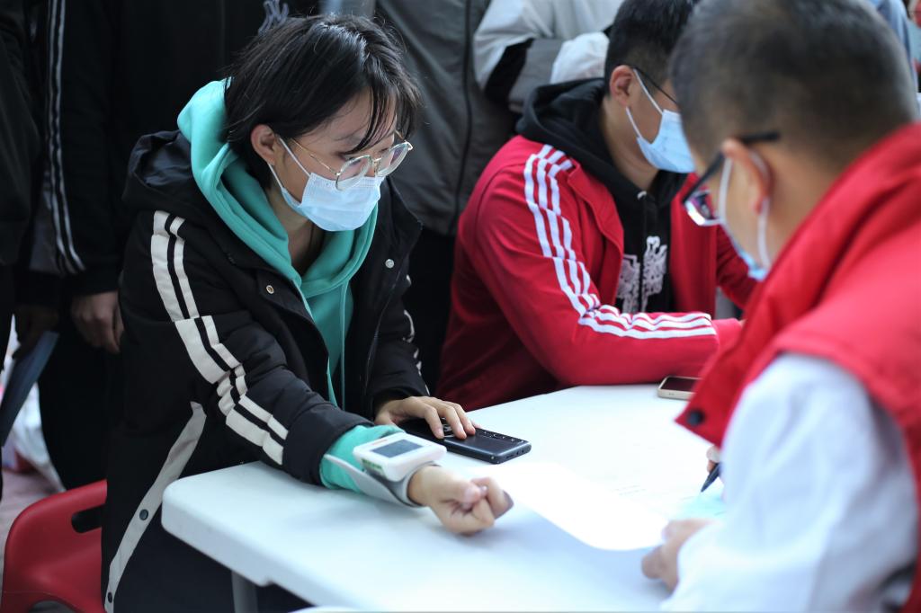 我校活动现场共分为登记区、体检区、献血区、休息区等区域,志愿者协会的志愿者们轮流值班为前来献血的同学们提供服务和帮助。现场秩序井然,同学们自觉佩戴好口罩,依次排队进行信息登记、血压测量、血液类型检验、静脉采血等环节。虽然深秋天气寒冷,但依然没有抵挡住学生们献血的热情。多数同学都是第一次献血,他们没有紧张和害怕想到更多的是能够给需要的人提供帮助。越来越多的同学加入无偿献血者的行列,用爱心传递爱心,伸出援助之手,支持公益献血事业。