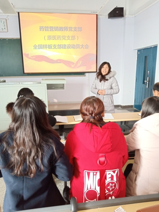 会上,药管营销教师党支部书记段立华老师传达了教育部关于“全国党建工作样板支部”培育创建的相关文件精神,明确建设目标、验收时间及建设要求。