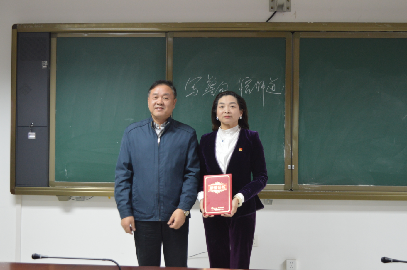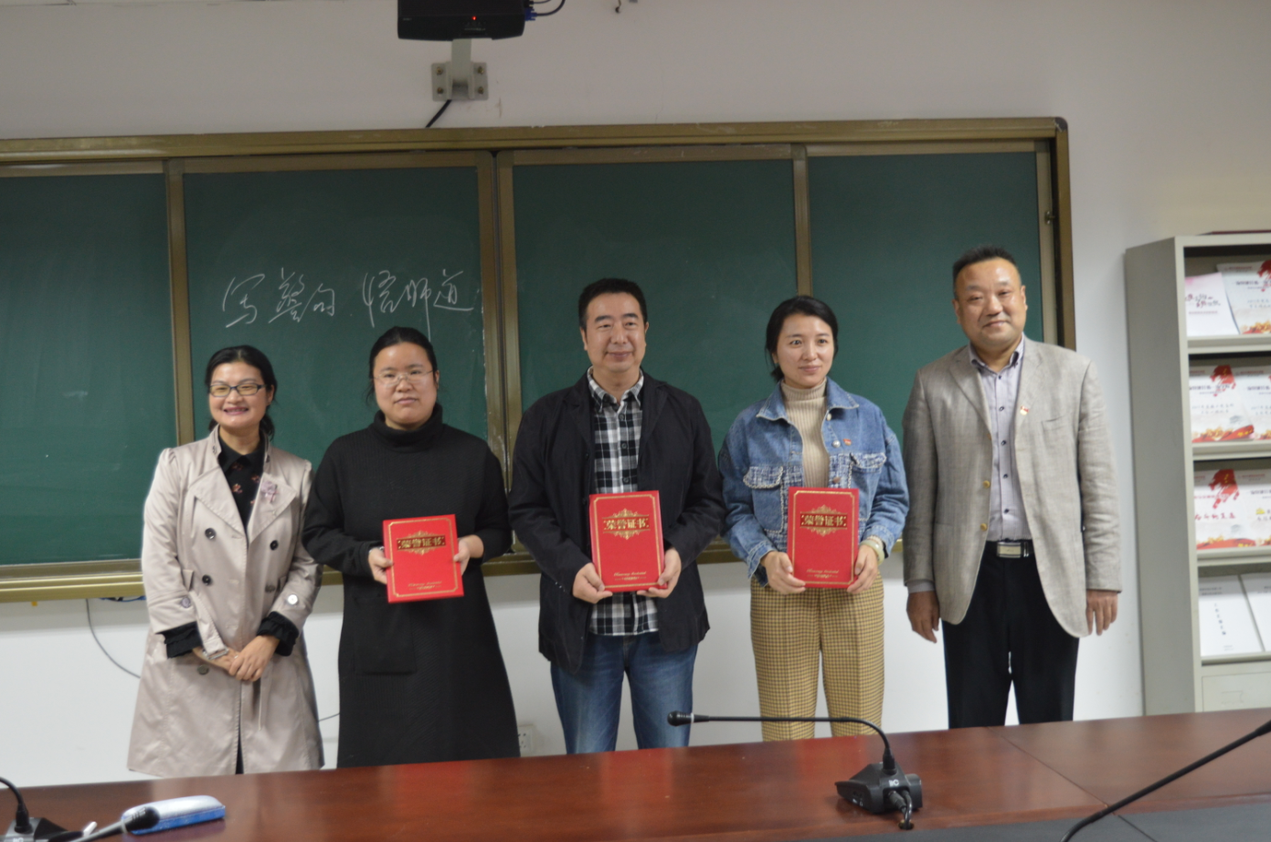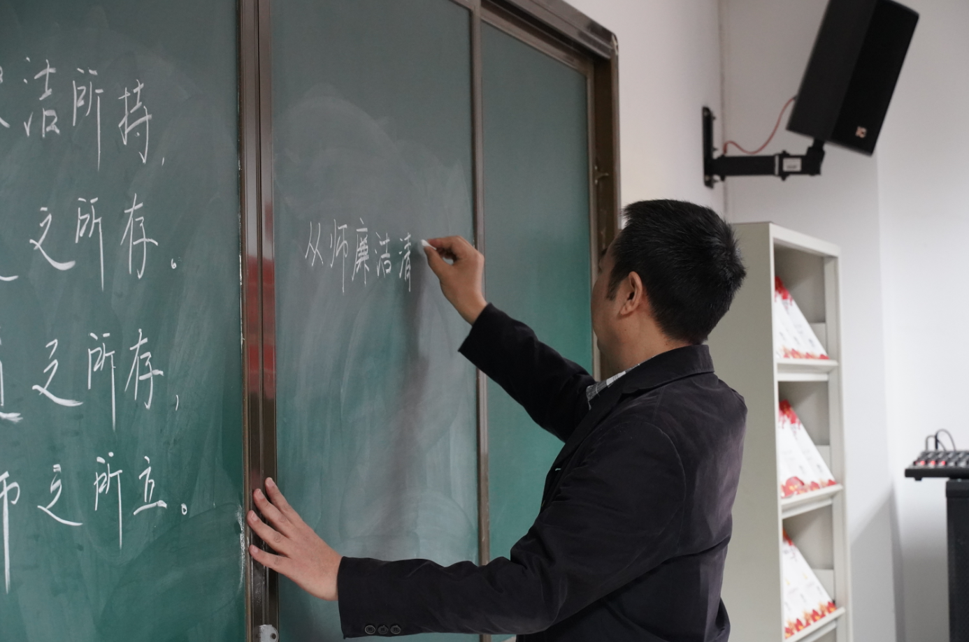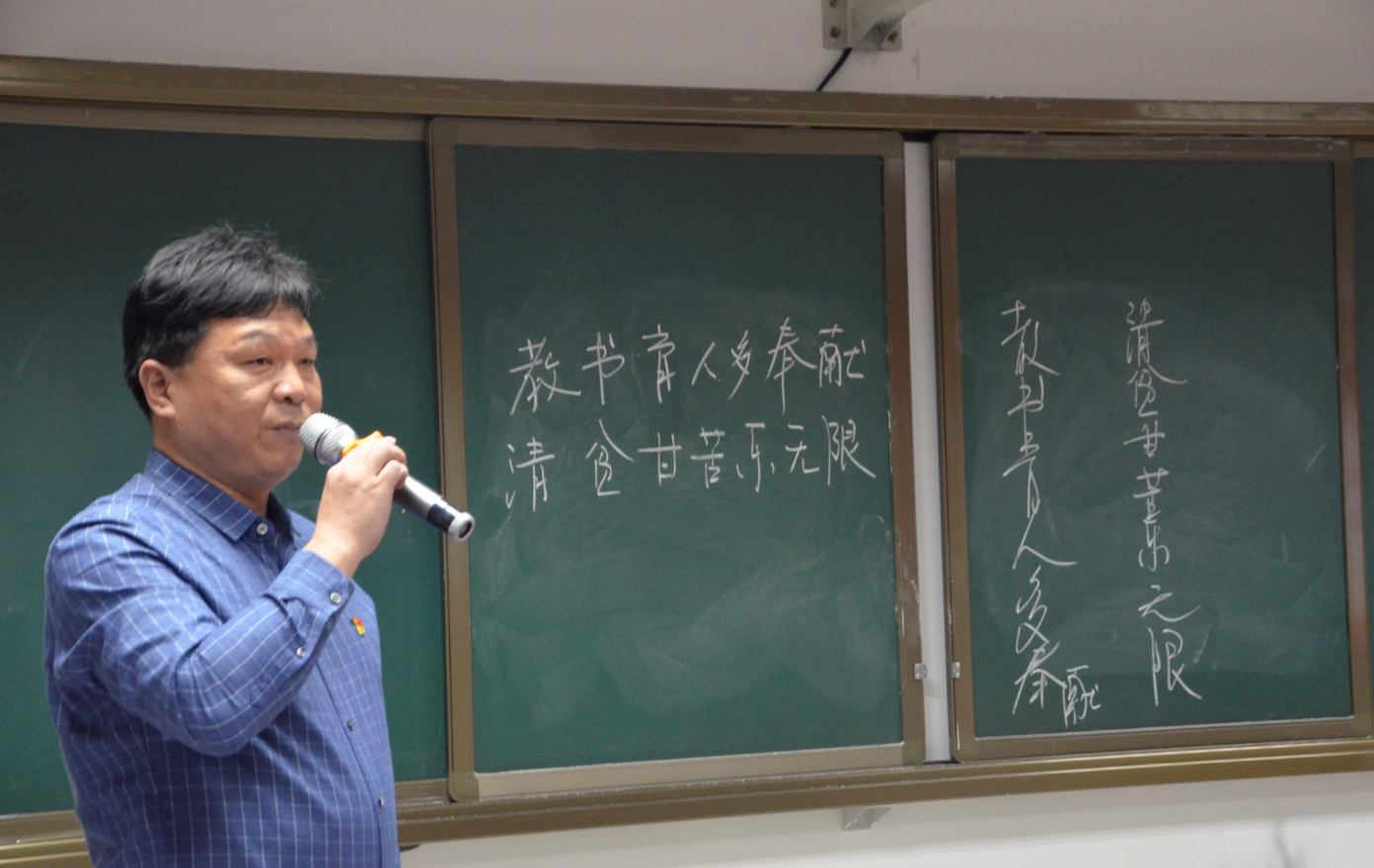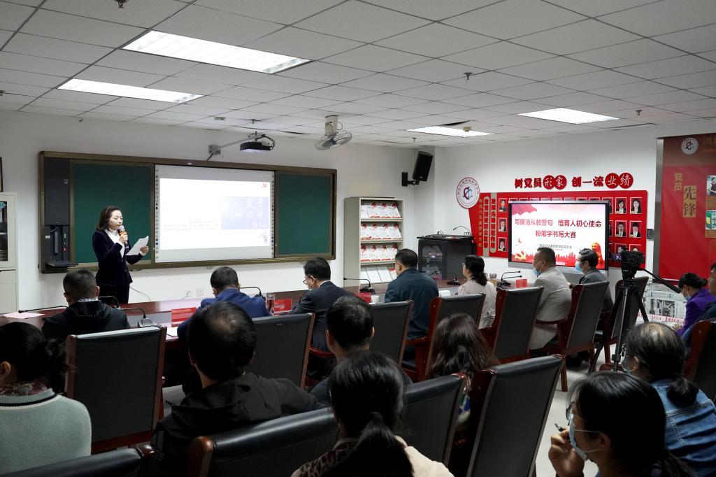 10月28日,物交院党总支在党员活动室举办了“写廉洁从教警句 悟育人初心使命”粉笔字书写大赛决赛。校党委副书记、副校长李全、校纪委书记齐建模,党委组织部、党委宣传部、监察室、教务处、学工处等有关部门负责人、物交院全体党员教师参加活动。
