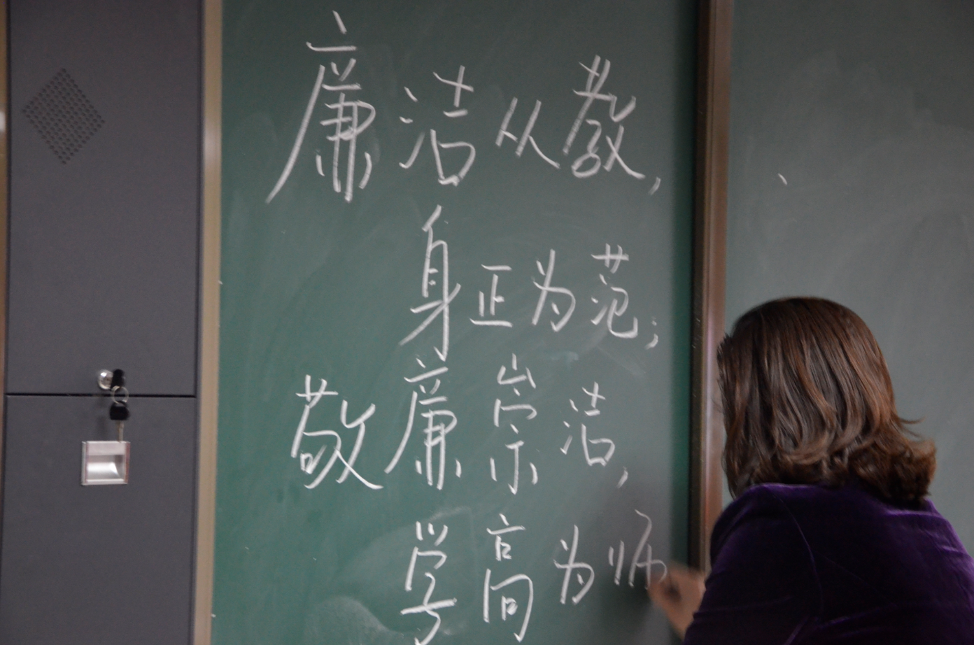经初赛选拔,石小平、万雯、刘婷、汪玉卉、韩婷婷、王军、何清萍、尹平娥、万微、韦琪等10名教师脱颖而出参加此次决赛。决赛现场,在评委和监督员见证下,参赛教师运筹帷幄、笔走龙蛇,横平竖直,认真书写着充满艺术魅力的粉笔字,他们一边体会为师之道,一边激情投入,将一句句蕴含着教育初心的名言警句或遒劲有力、或清雅秀美、或潇洒飘逸、或苍劲挺拔、或宛转隽永地展现在黑板上。
