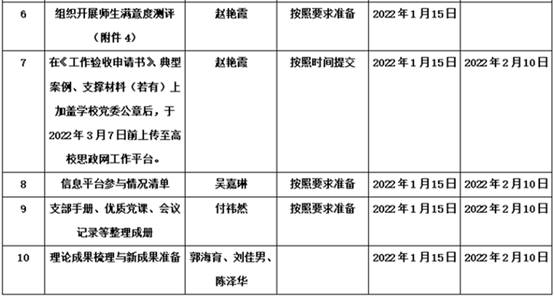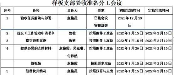 新年临近,样板支部创建工作接近尾声,为了使支部工作能够画上一个圆满的句号,打造出第二党支部的特色党建品牌,赵艳霞老师做出如下工作安排: