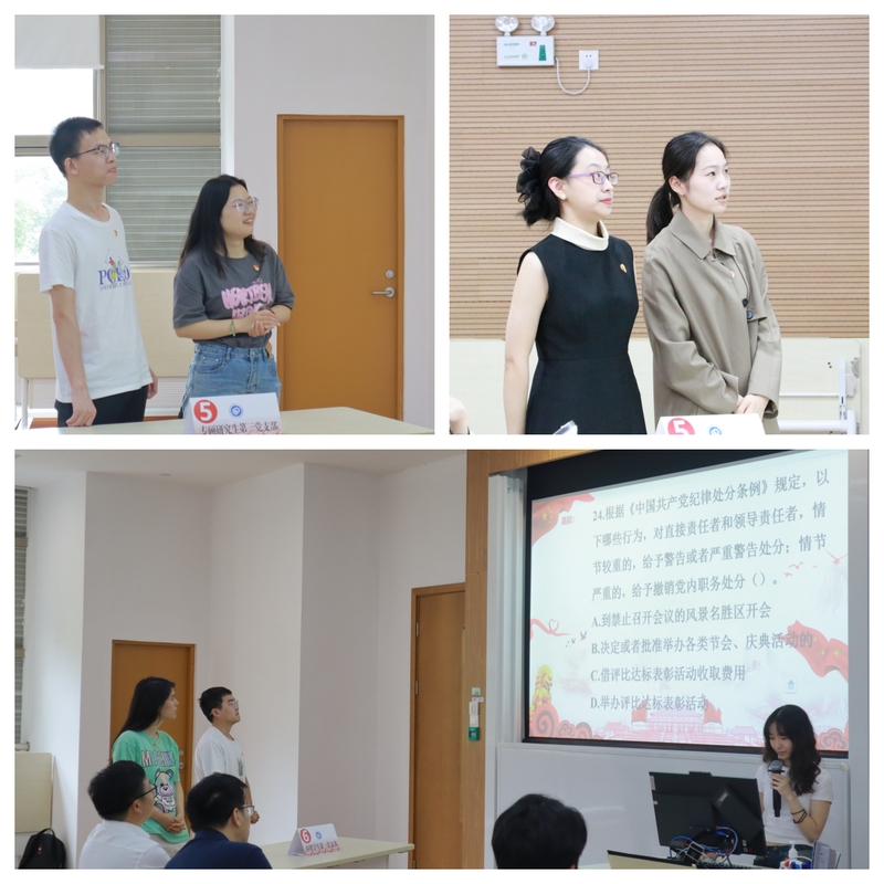 前期,商学院全体党员通过线上的方式积极参与了党纪学习教育知识的初赛,经各支部推选,来自学院各师生党支部的50名代表组成了25支队伍参与决赛。