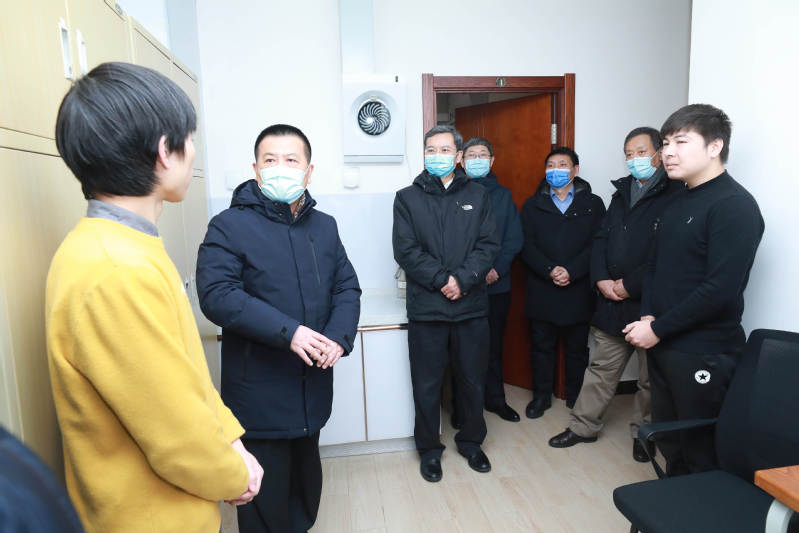 哈工大报讯(刘培香/文 辛然/图)2月3日下午,以国家卫生健康委员会副主任雷海潮为组长的国务院联防联控机制综合组黑龙江工作组来校检查指导疫情防控工作。黑龙江省卫生健康委员会副主任李维东,校党委书记熊四皓,校党委副书记、校长周玉等陪同检查。