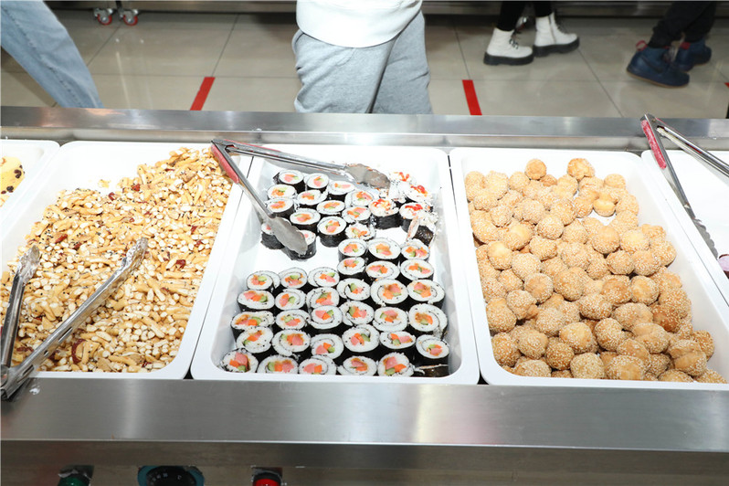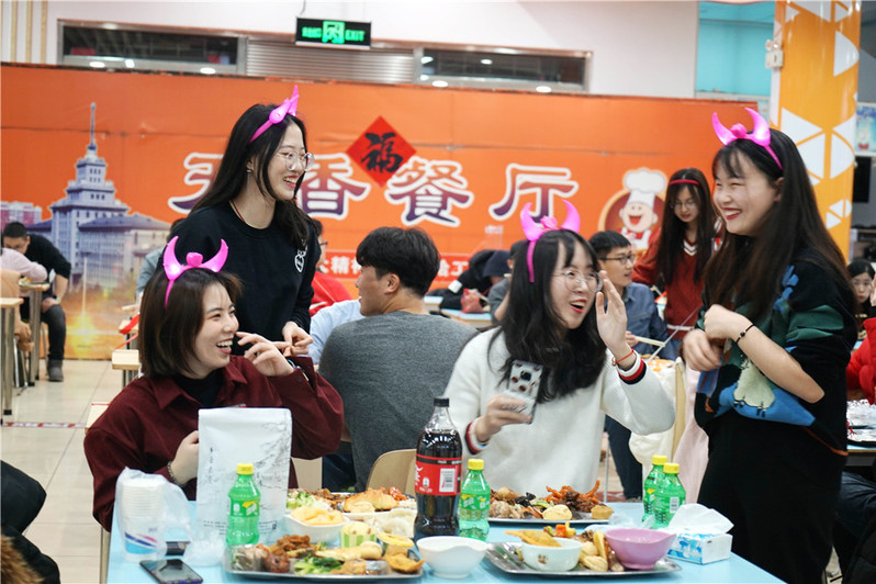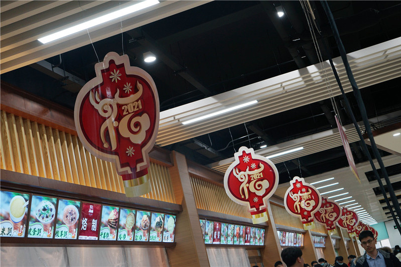 学校十分关心留校师生,在符合疫情防控要求的前提下,为在校学生、住校服务人员、行政值班人员准备了丰盛的年夜饭和亲情餐。其中,除夕年夜饭为免费“自助餐”,采取“错时进餐”的方式,按照人员类别分时进餐;初一到初三为免费“套餐”,四菜一汤,按时段供餐。为降低因人员流动带来的防疫风险,师生可分别在一校区、二校区、科学园进餐。