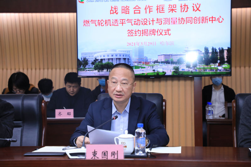 束国刚在致辞中表示,此次签约标志着双方合作迈入全面战略协同阶段,这是双方贯彻落实党的十九届五中全会精神、助力科技自立自强的重要探索,创新产学研用合作新模式、并肩打赢关键核心技术攻坚战的重要实践,更是双方践行新型举国体制、服务国家重大战略任务的重要举措。希望双方在重型燃机重大专项任务推进中展现新作为,在碳达峰、碳中和目标实现中彰显新价值,在产学研深度融通体制建设中释放新动能,努力将协同创新中心建设成为重型燃机领域不可替代的战略科技力量。
