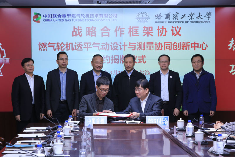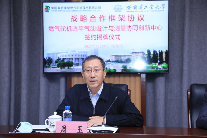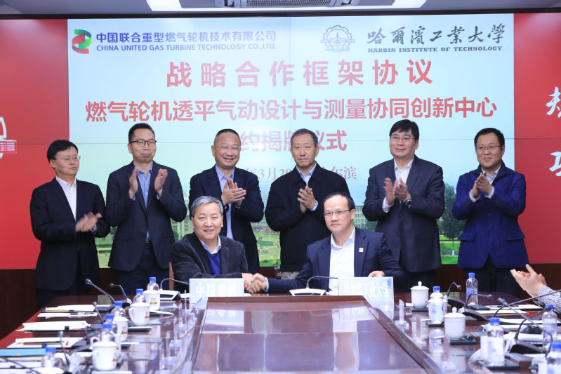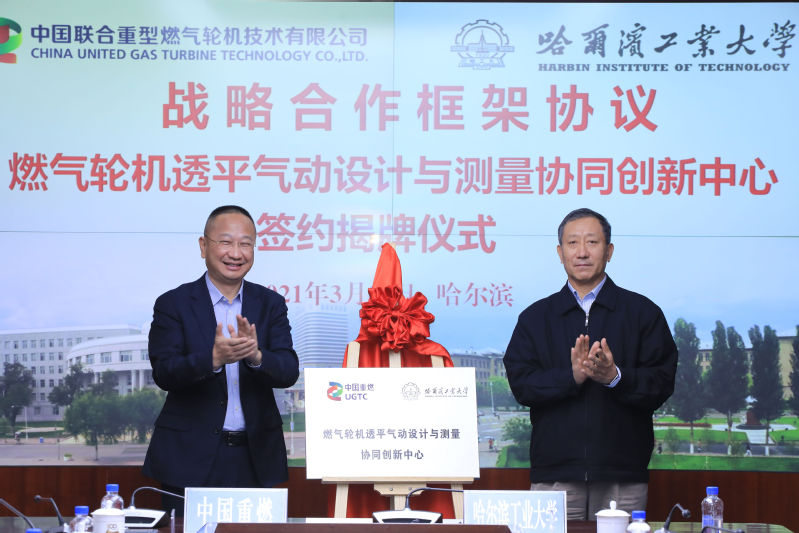 哈工大报讯(刘培香/文 辛然/图)3月29日,我校与中国联合重型燃气轮机技术有限公司(简称“中国重燃”)签署战略合作协议、协同创新中心共建协议。签约仪式在行政楼626会议室举行。中国重燃党委书记、董事长束国刚,我校党委副书记、校长周玉出席签约仪式,并为协同创新中心揭牌。