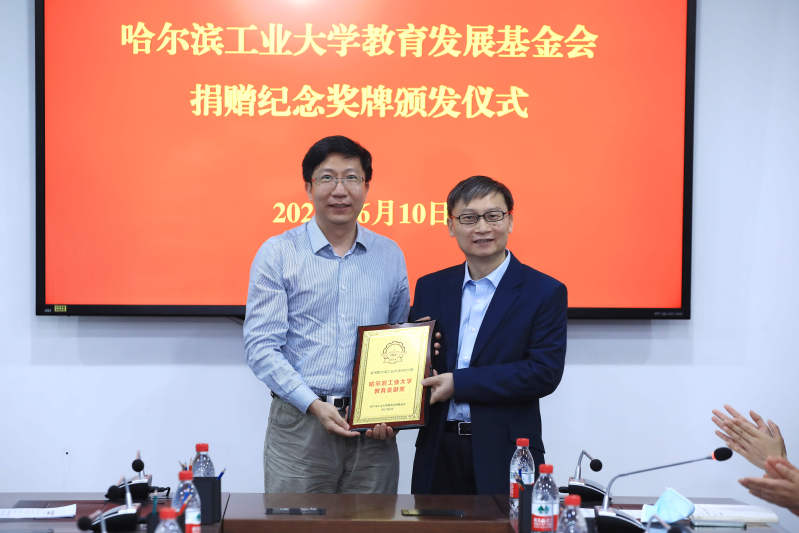 哈工大全媒体(闫明星/文 辛然/图)6月10日,哈工大教育发展基金会捐赠纪念奖牌颁发仪式在校举行。89025班校友捐赠150万元,用于设立“89025奖学金”。我校常务副校长韩杰才为89025班校友代表颁发捐赠纪念奖牌和证书。有8名89025班校友代表参加了仪式。