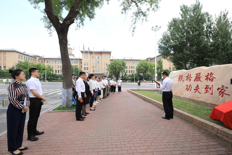 哈工大全媒体(张妍/文 辛然/图)为扎实开展党史学习教育,强化党员教育实效,深入推进机关党建,6月28日,“红色校园行 见学微党课”揭牌仪式在校训石前举行。校党委常务副书记、机关党委书记安实为“校训基石”见学点揭牌。校党委常委、组织部部长、机关党委常务副书记孙雪出席活动。