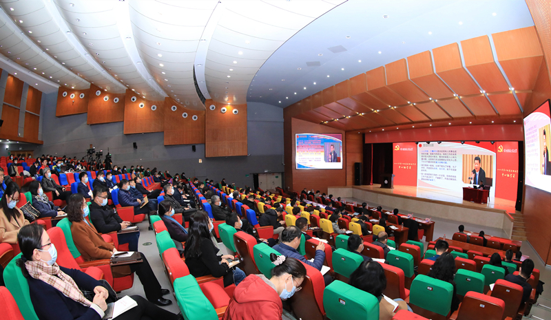 校党委副书记、副校长吴松全就意识形态工作做了专题辅导报告。他带领大家学习了中共中央、国务院印发的《关于新时代加强和改进思想政治工作的意见》、中共中央办公厅印发的《关于加强新时代马克思主义学院建设的意见》,传达解读了学校党委最新制定下发的相关文件精神。他强调,要牢牢掌握意识形态工作领导权,必须推进马克思主义中国化时代化大众化,建设具有强大凝聚力和引领力的社会主义意识形态,使师生员工在理想信念、价值理念、道德观念上紧紧团结在一起。