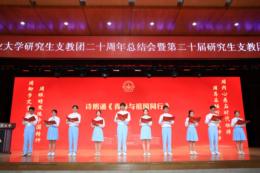 仪式最后,全体支教队员共同带来了诗朗诵《青春与祖国同行》并进行青春宣誓。