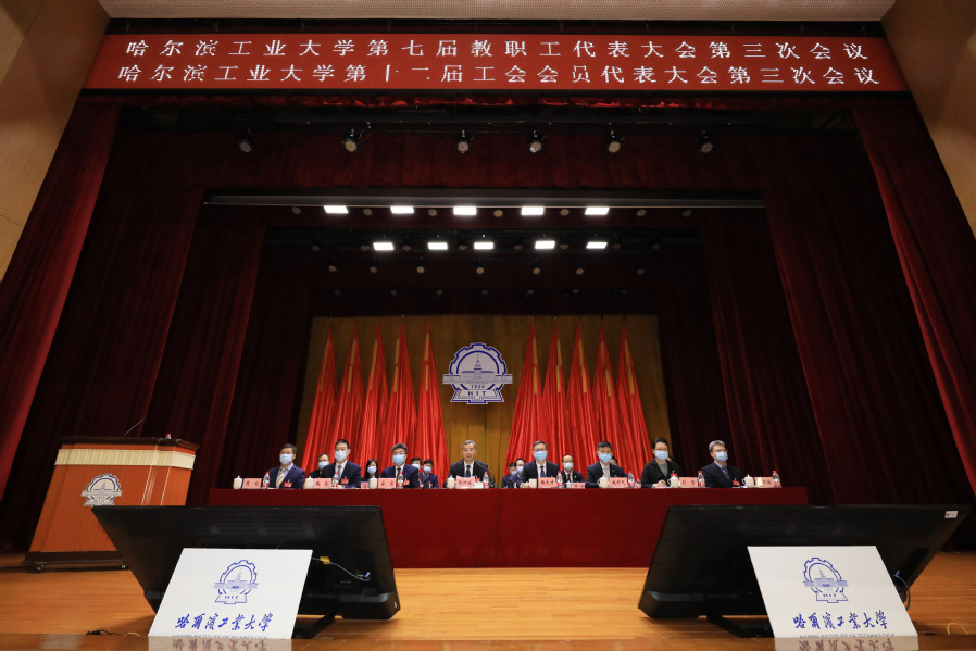 哈工大全媒体(闫明星/文 辛然 隗海燕 向碧霞/图)2月26日,第七届教职工代表大会第三次会议、第十二届工会会员代表大会第三次会议在主楼礼堂召开。校党委书记熊四皓主持会议并讲话。校长韩杰才作了题为《深入贯彻落实习近平总书记贺信精神 奋力开创新时代新征程卓越发展新局面》的工作报告。会议面向一校三区同步直播。