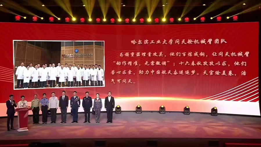 哈工大问天舱机械臂团队由刘宏院士领衔,机械、电气、计算机等多学科教师和博士生为主体,平均年龄33.3岁。团队联合研制的问天舱机械臂在2022年成功发射入轨,圆满完成支持航天员出舱活动、科学载荷照料等多项任务。在支持航天员完成出舱任务时得到了航天员刘洋的赞誉:“小机械臂动作精准、无需微调”。问天舱机械臂团队目前有中国工程院院士1人、国家高层次人才6人、国家青年人才1人;获国家技术发明二等奖4项,获欧盟机器人技术和转化一等奖1项,入选中国高校十大科技进展1项,获省部级科技奖励10余项;出版专著3部,发表SCI/EI检索论文400余篇,授权发明专利250余项;承担国家科技重大专项、重点项目等经费超10亿元。团队获评“第六届全国专业技术人才先进集体”“全国高校黄大年式教师团队”、2022“感动龙江”年度群体。