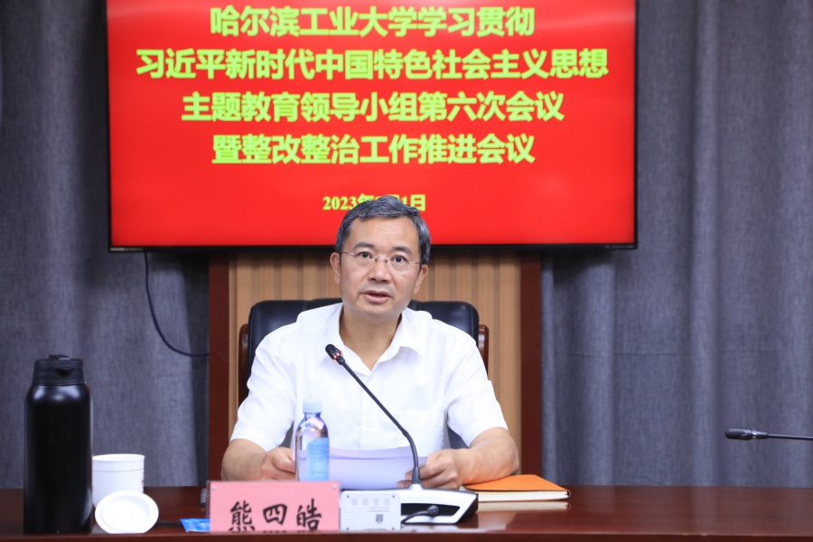 哈工大全媒体(刘培香/文 辛然/图)8月1日,学校在行政楼626会议室召开学习贯彻习近平新时代中国特色社会主义思想主题教育领导小组第六次会议暨整改整治工作推进会议,听取学校主题教育问题清单整改任务、专项整治方案落实情况汇报,研究部署下一步工作。校党委书记、主题教育领导小组组长熊四皓主持会议并对下一步工作作出部署。