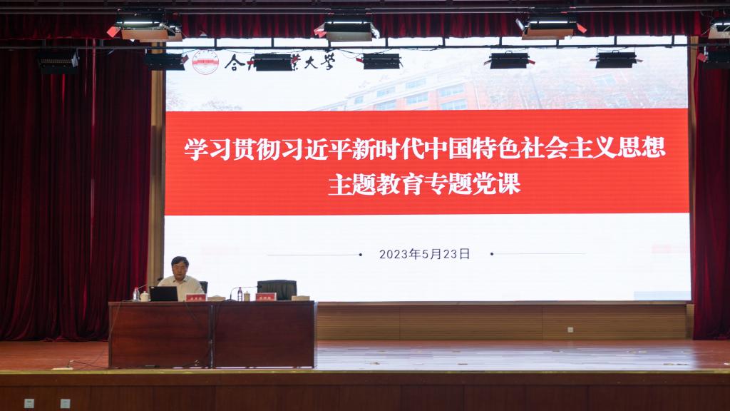 按照学校学习贯彻习近平新时代中国特色社会主义思想主题教育有关工作安排,5月23日下午,校党委书记余其俊在翡翠科教楼以“坚持以人民为中心”为题,讲授专题党课。教育部主题教育第四指导组副组长范迅到会指导。校党委副书记陈鸿海主持党课。