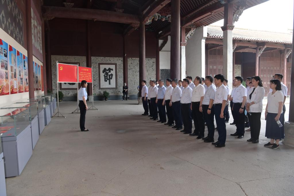 随后,中心组成员一行来到中共中央东南局旧址、新四军军部大会堂旧址和司令部旧址参观学习。在大会堂旧址进行的现场教学中,同志们并排而立,认真聆听《皖南的怀念——记周恩来在云岭的二十个日夜》主题党课,重温周恩来同志在1939年初,于战火纷飞中密行至云岭,力促抗日民族统一战线,壮大精诚团结抗战力量,共商在大江南北全面开展敌后游击战争战略对策的非凡历程,深切缅怀周恩来、叶挺、项英等老一辈革命家、军事家的丰功伟绩。