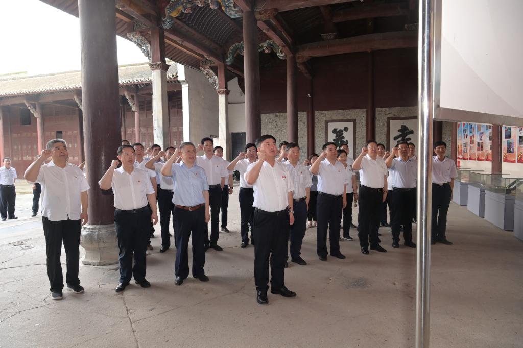 在鲜艳的党旗前,余其俊带领中心组成员重温了入党誓词,党员干部一道举起右拳、庄严宣誓:“我志愿加入中国共产党,拥护党的纲领,遵守党的章程……随时准备为党和人民牺牲一切,永不叛党。”入党初心始终牢记,奋斗使命愈发坚定,铿锵有力的誓词,体现了全体同志对中国共产党的无限忠诚。
