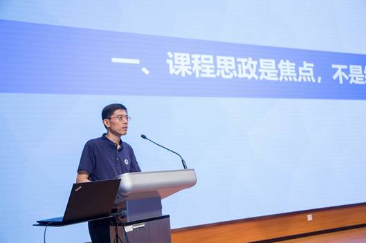 江苏省教育厅高教处邵进处长做了题为“江苏高校课程思政建设的思考与实践”的特邀报告。报告围绕课程思政建设的价值方向、课程思政建设的现实挑战、课程思政建设的实施路径三个方面展开。详细解读了江苏省教育厅近期发布的《关于深入推进全省高等学校课程思政建设的实施意见》,在全国率先建立了课程思政校级层面、院系专业层面和课程层面的三级建设指标体系,他强调课程思政建设是当前人才培养改革的热点、重点和难点,需要顶层设计、统筹规划、系统推进。
