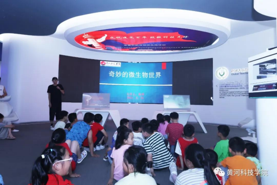 纳米所河南省工程技术研究中心主任陈林博士以《微生物的秘密》向小朋友普及了人与自然、人与微生物和谐共生的奥秘。工学部机电与工程训练科教中心王振虎老师指导的大学生机器人团队以机甲对抗的形式点燃了孩子们的热情,以寓教于乐的形式展示了机器人背后的科学秘密。