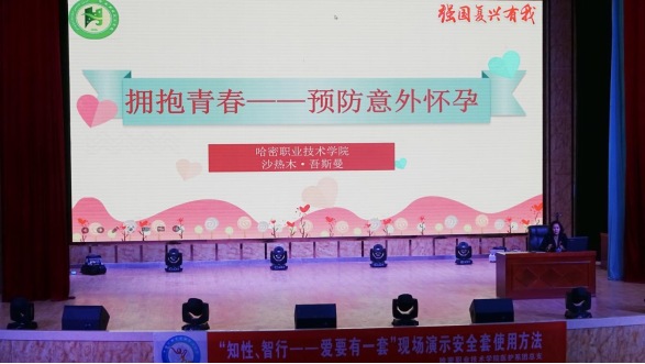 为大力宣传党和国家预防艾滋病的重要政策和措施,普及预防艾滋病的知识,使广大学生积极参与到预防艾滋病的行列中,不断提高其对预防艾滋病工作重要性的认识,哈密职业技术学院于11月9日下午开展高校防艾基金项目系列活动,学院副院长沙热木·吾斯曼、哈密市疾控中心赵娜主任、宣传部、思政部、学生处、团委、防艾小组指导老师以及全院500名学生代表在博阅楼报告厅参加此次活动。