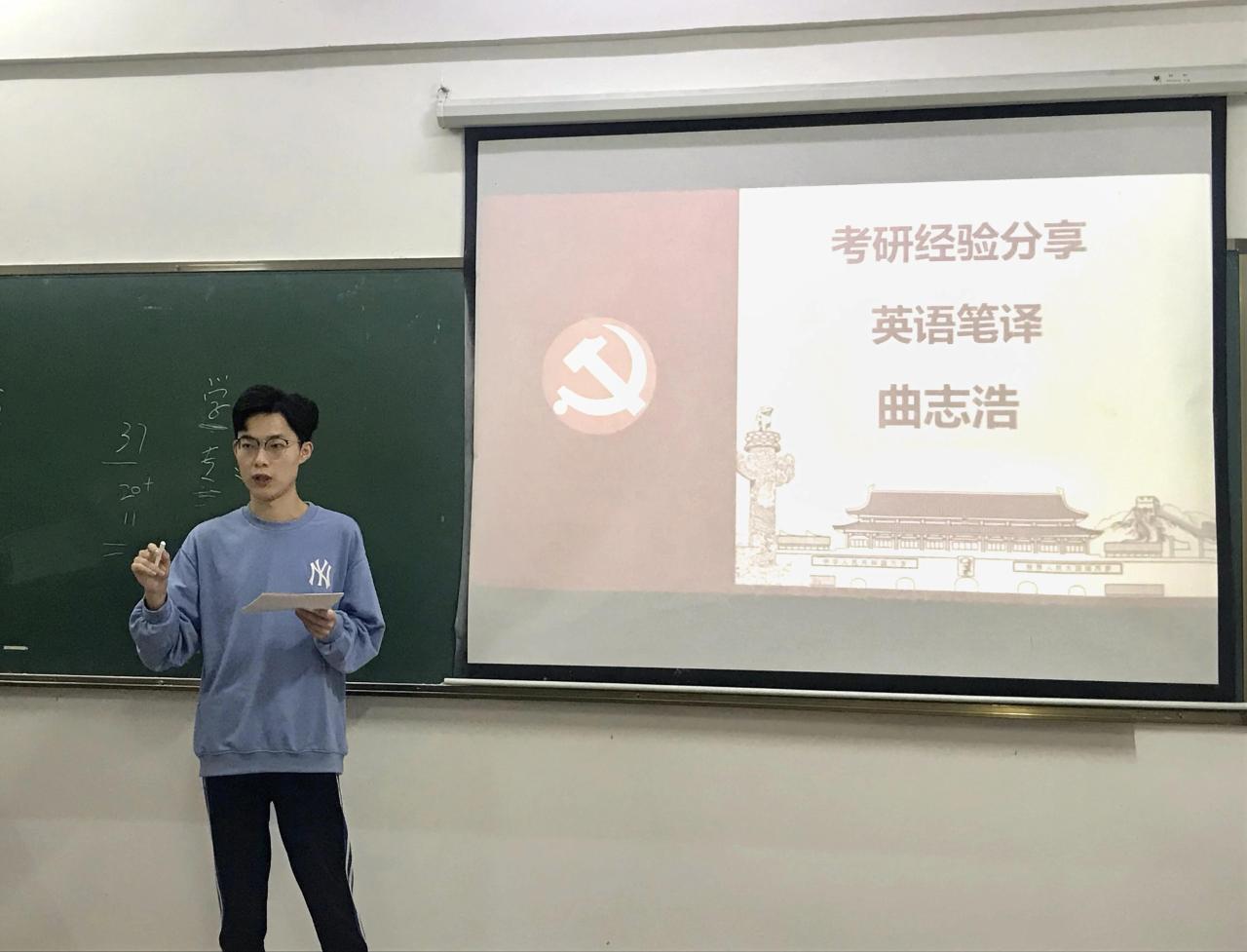 随后,翻译专业的曲志浩与李昀璟同学结合自己的考研经历,为大家分析了考研政策、复习进度安排、翻译硕士各科目复习方法与备考书籍,鼓励同学们早做准备,持之以恒。
