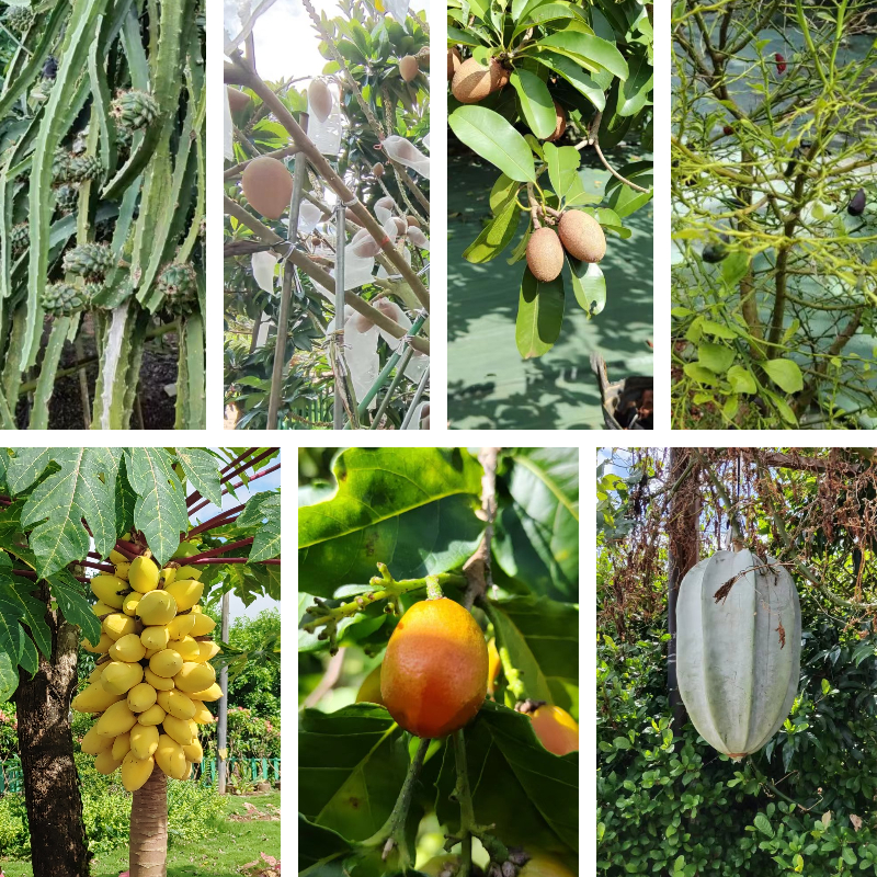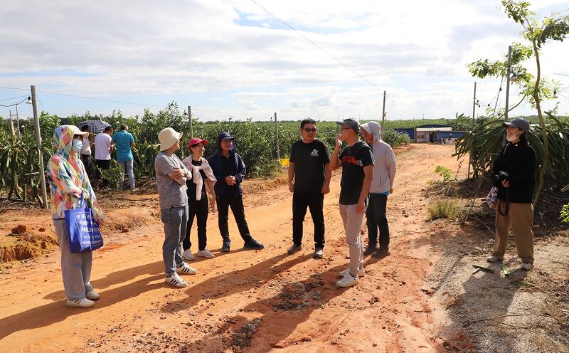 老师们来到位于琼海市大路镇的“世界热带水果之窗”。这里是集世界奇特水果引进选育、示范种植、科普观光为一体的综合农业科技示范园,该园先后从中美洲、南美洲、东南亚等地引进热带新奇特水果400多种,其中150多个品种已试种成功;多种热带水果包括手指柠檬、冰淇淋果、牛奶果、黄晶果、燕窝果等品种,在海南省内示范种植面积达2.5万亩;示范园已发展成世界热带水果观光旅游胜地,带动当地农民就业,助力海南乡村振兴。老师们边参观边认真观察果树的病虫害发生情况,详细记录蓟马、粉虱和盲蝽等害虫对果实品质造成的影响,同时与园区工作人员深入交流、出谋划策,为存在问题提供解决思路。