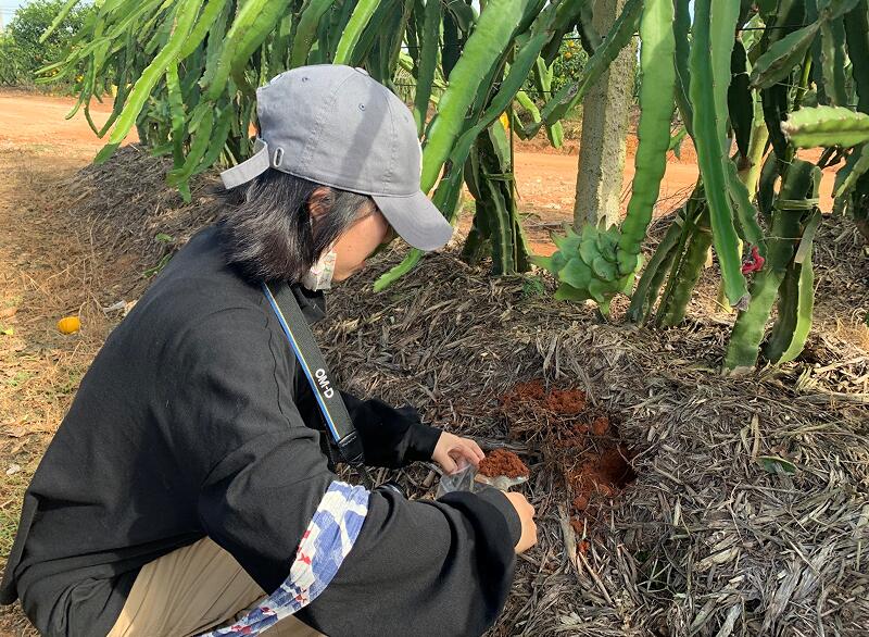 在儋州中和镇,老师们参观了火龙果创新种植基地,与海南金通农业开发有限公司董事长范总进行深切交流,对火龙果间种黄花梨、火龙果间种沃柑等新型农业的发展前景进行探讨分析,同时对中和镇冬季瓜菜——毛豆、辣椒的病虫害进行详细调查、采样。