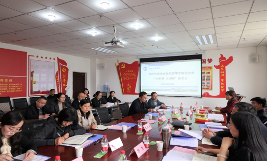 根据河南省委教育工委办公室、河南省教育厅办公室关于开展2023年度全省高校春季学期思政课“大听课 大调研”活动工作安排,4月12日上午,以河南工业贸易职业学院党委书记刘合行为组长,河南城建学院马院院长卢华东、洛阳理工学院马院院长苗国强、信阳职业技术学院马院院长祁欢、郑州师范学院马院副教授范会平、河南工业贸易职业学院马院赵文超老师为成员的第二调研组莅临我校开展思政课听课调研活动。校党委副书记袁静波,党委宣传部、教务处、科研处等部门负责人,马克思主义学院班子成员以及部分教师代表参会,会议由党委宣传部部长常超主持。