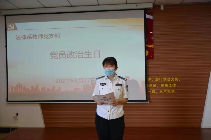 为深化政治教育,教育引导支部教师党员筑牢政治忠诚,按照学院队伍教育整顿学习教育环节实施方案要求,8月27日,法律系教师党支部组织了党员过集体政治生日和重温入党誓词活动。活动由教师党支部书记孙卫华主持,支部全体党员参加。